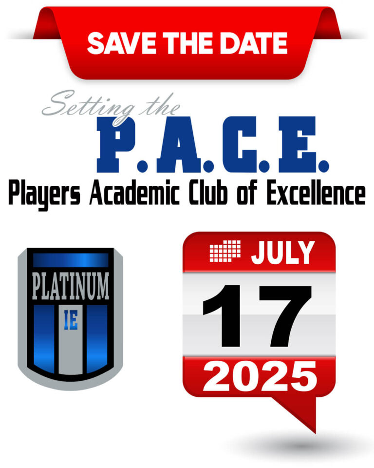 We are very excited to introduce “P.A.C.E.: Players Academic Club of Excellence”. At Platinum IE we are committed to recognizing the academic excellence of our players. By honoring achievements in the classroom, the goal is to ignite and inspire academic excellence within the club, within each team, and most importantly within each Platinum IE individual.