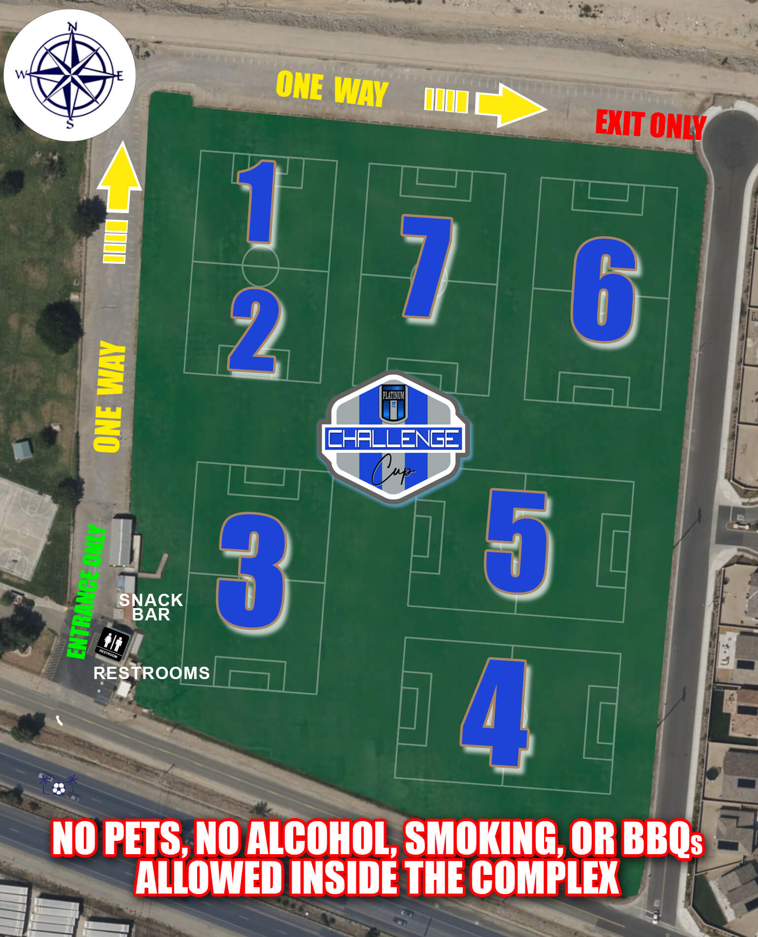 All games will be played at the IE Soccer Complex in San Bernardino.  The Challenge Cup is open to Boys and Girls teams born between 2017 and 2007.